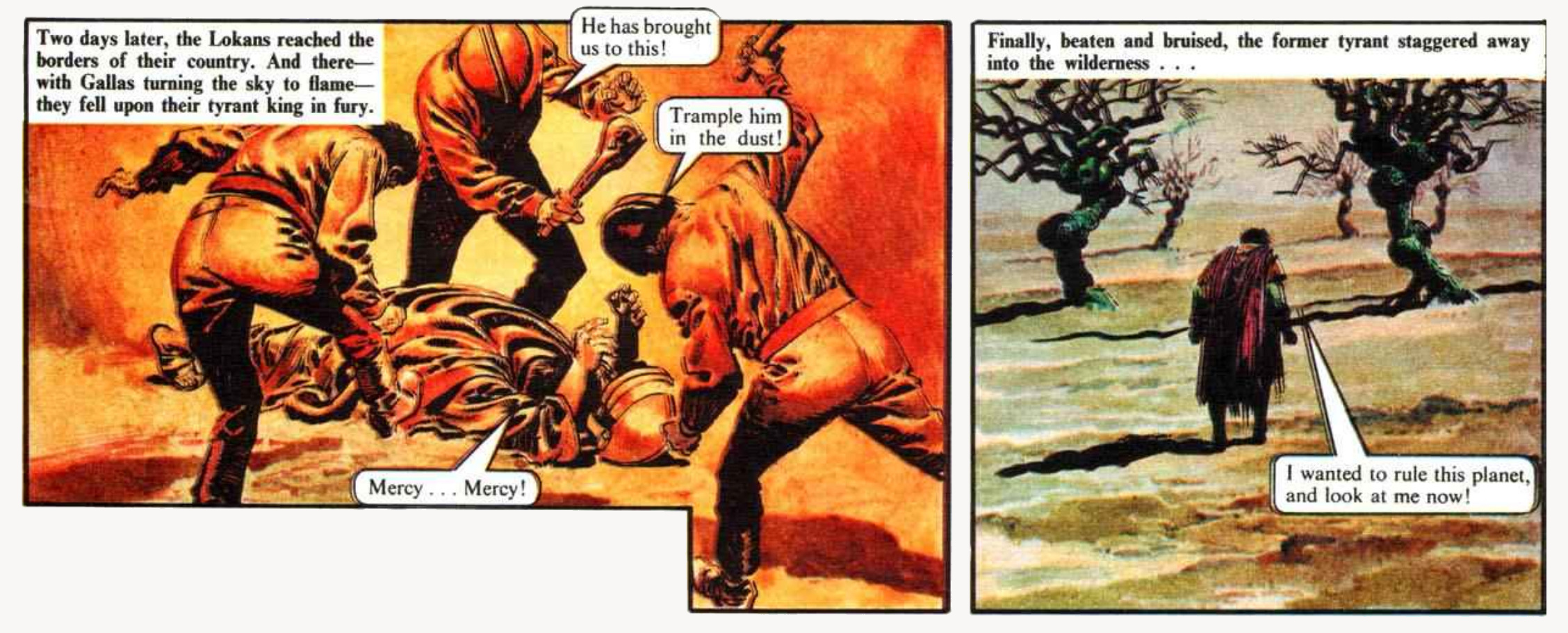 Trigo reveals his ambitions in Ranger issue #2 (instalment 2 of Episode 1) published 25 September 1965—and Nikko becomes King of Hericon in Look and Learn issue #344 (instalment 13 of Episode 14) published 17 August 1968—a span of three years.