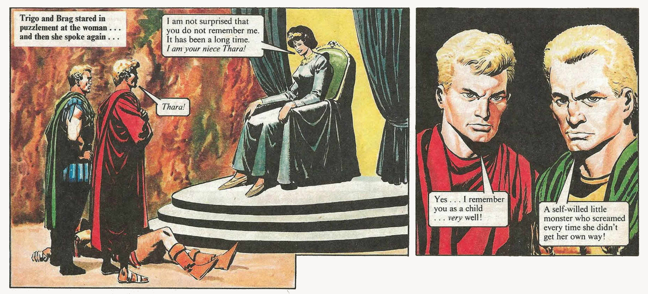 The foregoing survey of the rise of the Trigan Empire raises a number of questions. For example, there are questions surrounding the female characters. What happened to Thara? And what happened to Ursa? How and why did she vanish from the storyline?